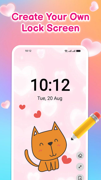 Unleash your artistic side! Love Draw Lockscreen Drawing gives you access to a variety of backgrounds, stickers, and tools. Explore your creativity through lock screen doodle and canvas draw together features to create unique designs.