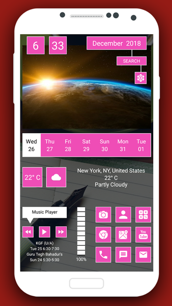 Clock, weather information, memory analyzer, music player, calendar, Map and battery widget is available in Trendy Launcher.