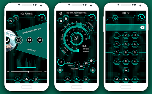 Strip hi-tech Launcher 3 - 2020 provide live weather and music player on your more screen.