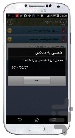 نرم افزاری که تمایل به نصب و استفاده از آن را دارید در واقع یک مبدل تاریخ می باشد که با دقت فراوانی قابلیت تبدیل تاریخ میلادی به شمسی و بالاعکس و نمایش تاریخ جاری سیستم بوسیله ویجکت ساده و زیبایی که در محیط گوشی شما به نمایش داده خواهد شد را دارد .