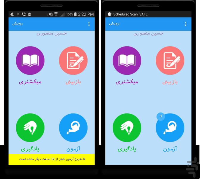 امکان نمایش و اعلان خودکار زمان فرا رسیدن آزمون شما به صورت ' نوتیفیکیشن ' و ' بج '.