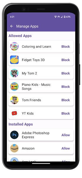 Kids screen timer is simple app using this you can set time limit and select apps which is allowed for your kids.