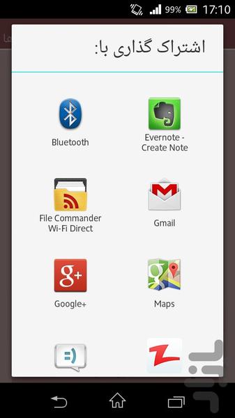 نحوه ی فعالسازی و تذکرات لازم در برنامه آمده است، پس از مطالعه و آشنایی با نحوه ی فعال کردن برنامه، از آن استفاده کنید و بدون نیاز به برنامه ی اضافی، فایل نصب برنامه را از طریق همین اپلیکیشن، برای دوستان و آشنایان خود ارسال کنید.
