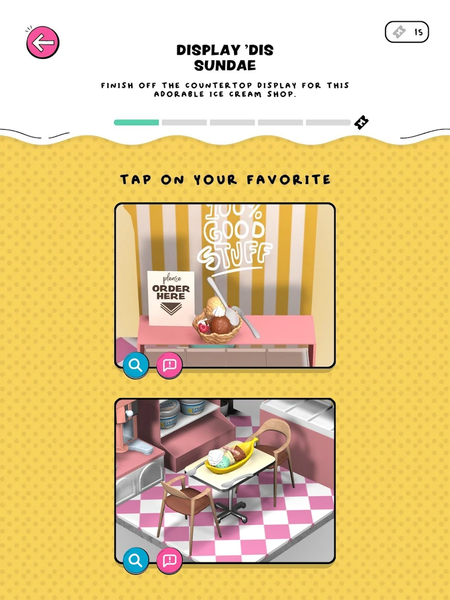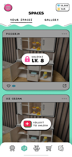 From the moment you enter the game, you’ll be greeted with Design Challenges—bite-sized creative prompts that let you express your style in under five minutes. Whether it’s placing mini sundaes into an ice cream shop display case or finishing the countertop design in an Italian pizzeria, every challenge is a chance to showcase your design instincts and make each scene shine. You’ll use your unlocked Recipes and Furniture to meet themed goals and score community points.