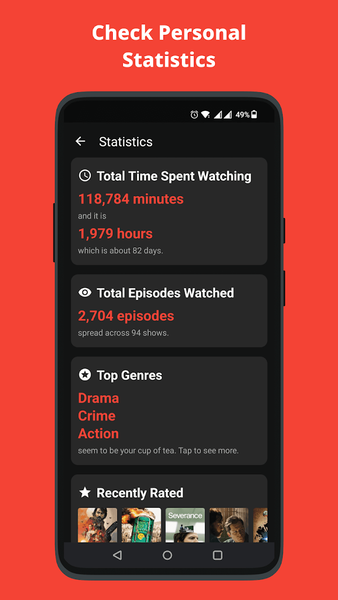 Manage your currently watched shows and movies but also things you might want to see in the future. See interesting statistics about your collection.