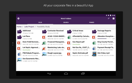 • Access your work files and folders on your devices.