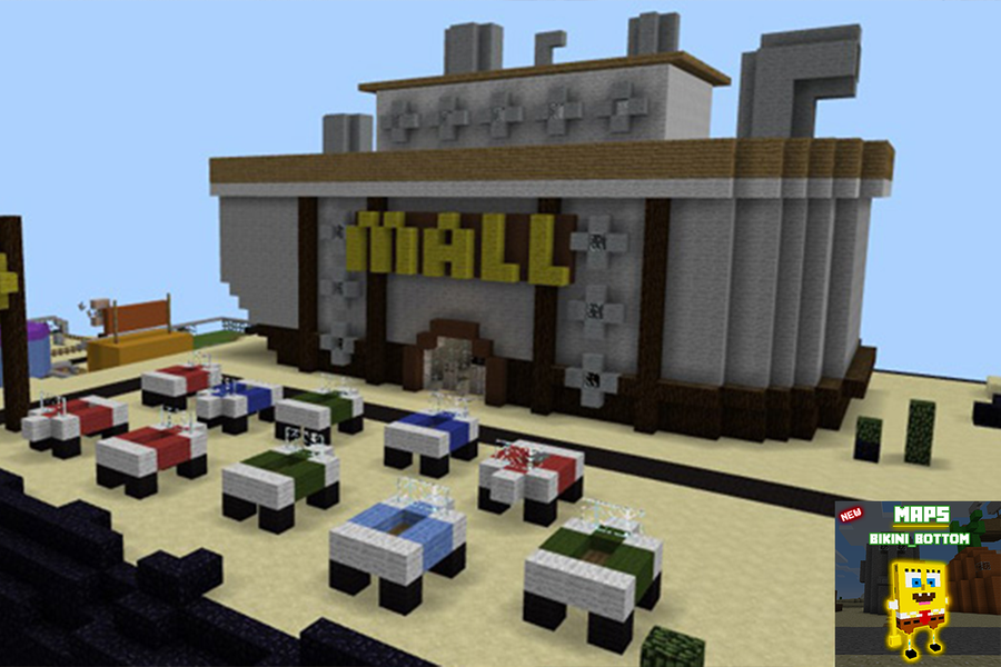 Bikini Bottom is map for MCPE (Minecraft PE) made for the fans of SpongeBob. This map includes everything from Sponge Bob own pineapple house to the Bikini Bottom Mall., then you will be able to play a custom map with: SpongeBob's house, workplace and City Mall.