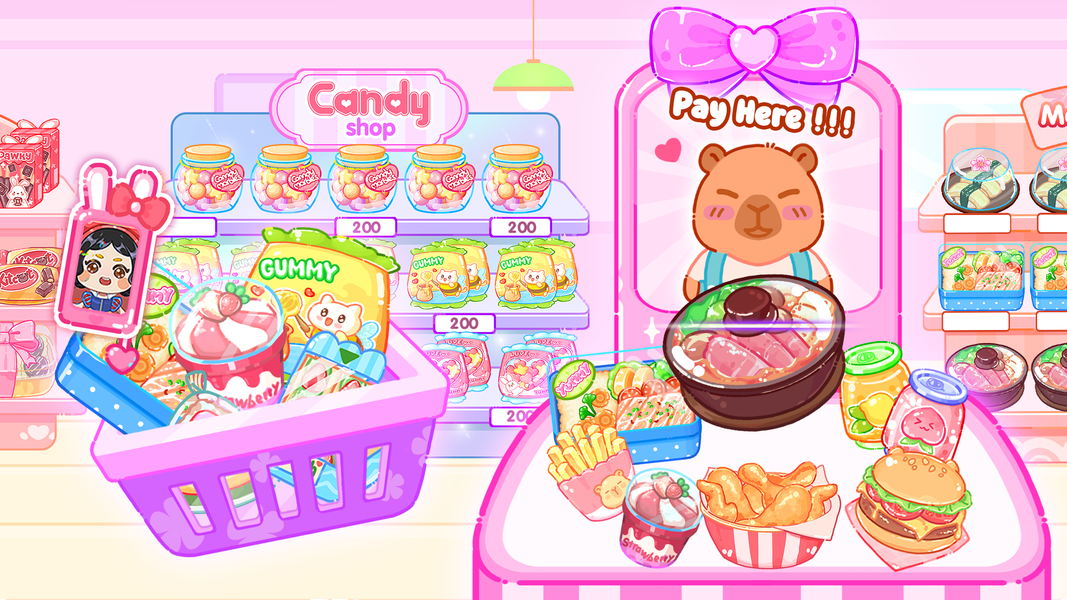 🏩 Supermarket: Head to the market to shop for the foods and craft your perfect feast. You can choose from various attractive food items from the supermarket, such as noodles, hamburgers, ice cream...