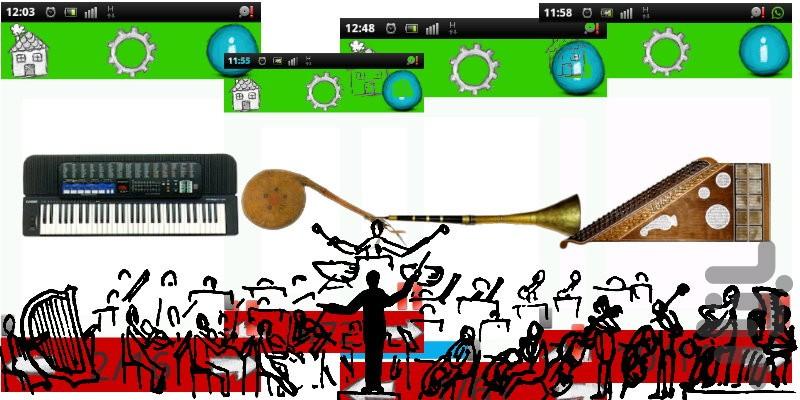توي هر قسمت مي تونيد با لمس هر ساز صداي اون ساز رو بشنويد و اطلاعات هر ساز رو هم مي تونيد بر اساس نام كشور ،جنس،طبقه بندي،وخانواده و تاريخچه و اطلاعات كلي در مورد هر ساز مشاهده كنيد.