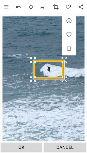 - Resize, crop, rotate, save or share images to reduce size of photos stored on the phone, posted on social media or sent over messaging apps.