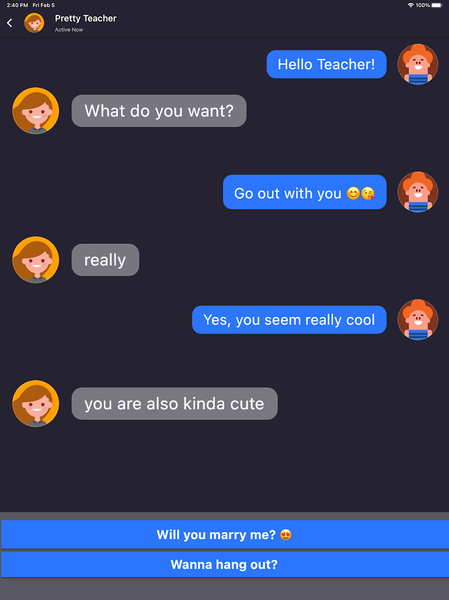You won't regret trying it text pranks out, having fun with this text-based humorous game, and learning how to pull off practical jokes! Select your narrative, download Chat Master: Prank Text right away, and finish all of the amusing discussions and challenges. Remember to let us know what you think about text pranks and these texting jokes by leaving a comment below. Your comments are incredibly helpful and enable us to produce more conversation games of the highest calibre. Enjoy, and thanks for downloading this Prank Chat Scary Teacher Fun!