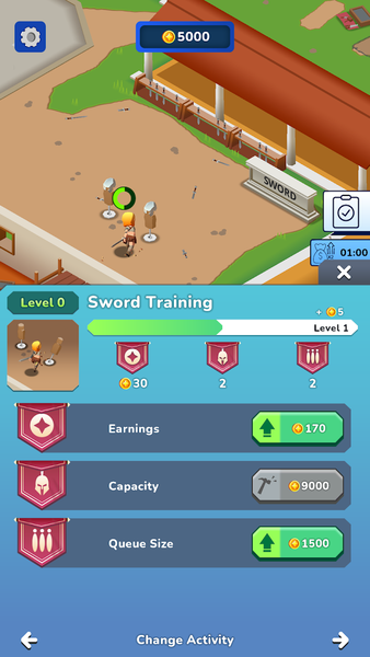 Here is what you can build up in Idle Gladiator Empire Tycoon.