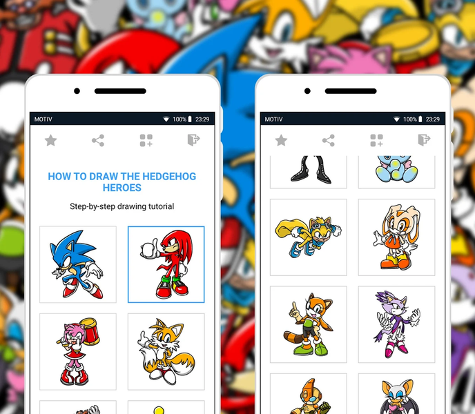Would you like to learn how to draw a speedy blue hedgehog and other heroes from the famous game? If yes, then you might like this tutorial app with step by step drawing lessons. We have created a series of tutorials that will show you how to easily draw and color a speedy hedgehog and his friends. If you like this application, then we will supplement it with new lessons.