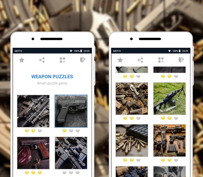 Do you love collecting puzzles and mosaics? Do you like learning different types of weapons? If yes, then we want to offer you this educational game and smart puzzle that you might like. After all, it is in this game that you will collect puzzles with images of different types of weapons: pistols, machine guns, and rifles. We have created this puzzle game for informational purposes only, to present different design options and engineering solutions.