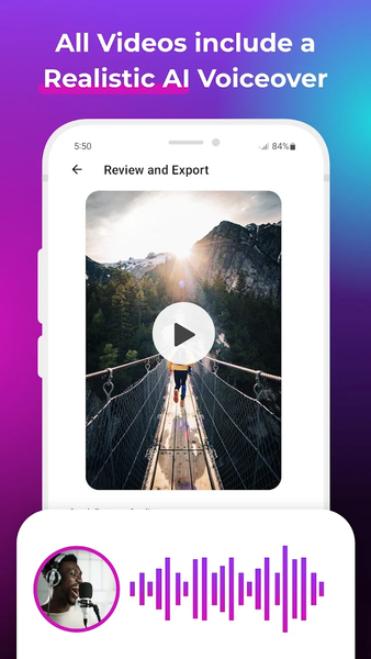 Add a realistic voiceover to your videos without doing anything. Our AI video generator offers AI Powered high-quality voiceovers that feel real giving your content a personal touch.