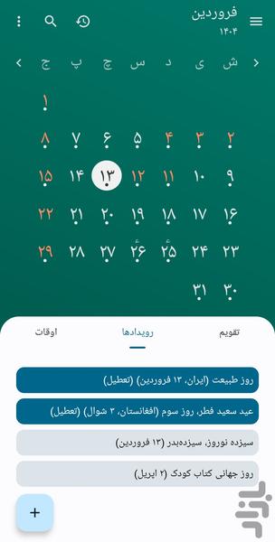 ⭐ نمایش تمام اوقات شرعی، وقایع ملی و مذهبی در تقویم