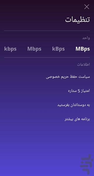 این برنامه به صورت رایگان سرعت اینترنت را بر اساس مگابایت و کیلوبایت و مگابیت و کیلوبیت اندازه بگیرید.