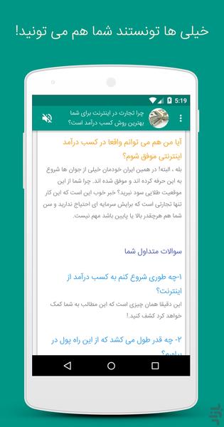 - به دنبال کسب و کار پرسود می گردید؟ در این فصل کشف می کنید چگونه با شرکت های معتبر و مطمئن خارجی از طریق اینترنت همکاری کنید و درآمد ماهیانه بالا به دلار کسب کنید. هزاران شرکت در آمریکا و اروپا به دنبال استعداد و مهارت شما می گردند. از این راه آسان کسب درآمد همین امروز به نفع خود استفاده کنید.