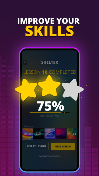 - Lessons with the score of your performance