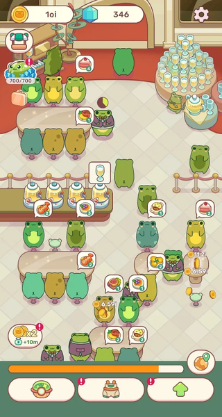 Sit back, relax, and watch as your frog empire grows even when you're not playing. With idle gameplay mechanics, you can earn coins and expand your kitchen empire even while you're away.