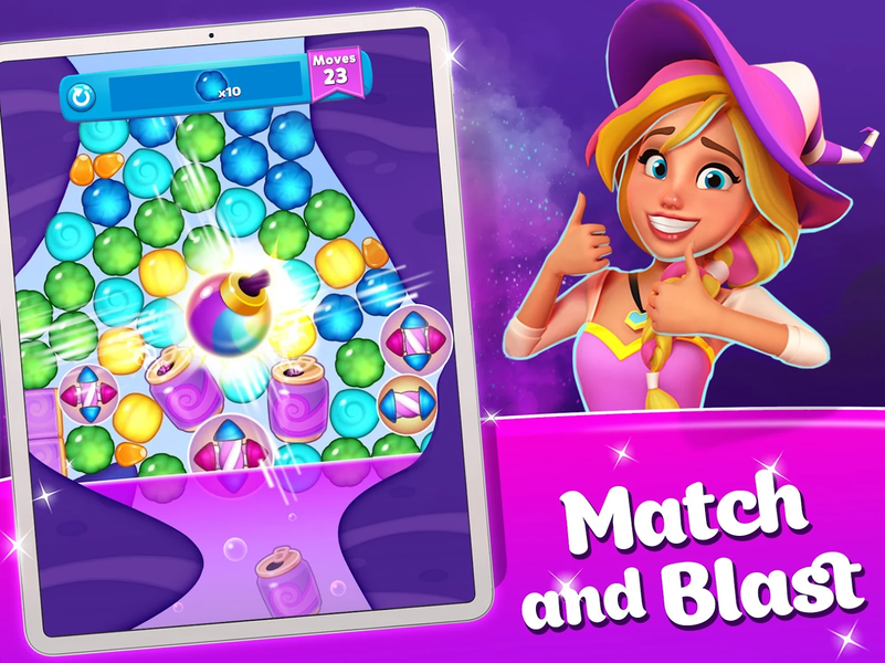 - Blast candies to solve puzzles