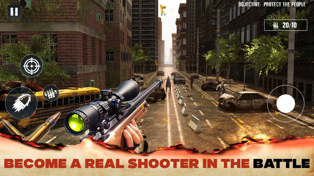 Are you bored of playing classic 3d sniper games? Then try this tactical fps zombie shooting games! Experience the feeling of becoming an elite sniper in city by shooting down mad zombies. 3d zombie survival games is a great time killer game for your phone or tablet.