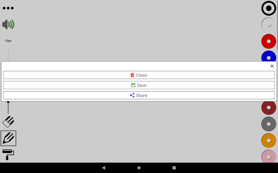 - thickness level, change the thickness of the drawing tool