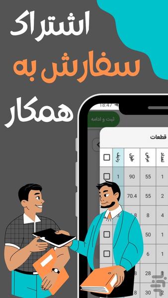 در اپلیکیشن کارگاه من با یک فناوری پیشرفته بهتر آشنا شوید : اپلیکیشن کارگاه من راه کاری هوشمند برای افزایش مدیریت همزمان چند سفارش با کاهش خطاهای متداول جهت افزایش رضایت مشتریان شما می باشد.