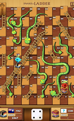 Snakes and Ladders is an ancient Indian board game regarded today as a worldwide classic. It is played between two or more players on a gameboard having numbered, gridded squares. A number of "ladders" and "snakes" are pictured on the board, each connecting two specific board squares. The object of the game is to navigate one's game piece, according to die rolls, from the start (bottom square) to the finish (top square), helped or hindered by ladders and snakes respectively.The game is a simple race contest based on sheer luck, and is popular with young children. The historic version had root in morality lessons, where a player's progression up the board represented a life journey complicated by virtues (ladders) and vices (snakes).