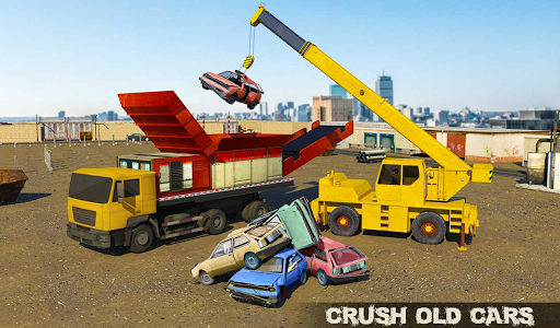 Scrap car crusher crane has extreme shredder machine that crush and demolish wrecked cars. Become heavy crusher operator for transforming wrecked car into scrap bits. The impossible car shredder has a grinder with crushing machinery surrounding it. Show eagerness of crushing junk cars with majestic crane operating missions and garbage truck driving. Operate magnetic grapple crane to lift rusty cars and drop them in car shredder. Turn on crusher machine to demolish rusty cars into scrap bits. Collect scrap metal in dumper truck and transport junk to a dump site for recycling purpose. Drive cargo pickup truck from auto repair shop to junkyard and continue crane missions while crushing wrecked cars.