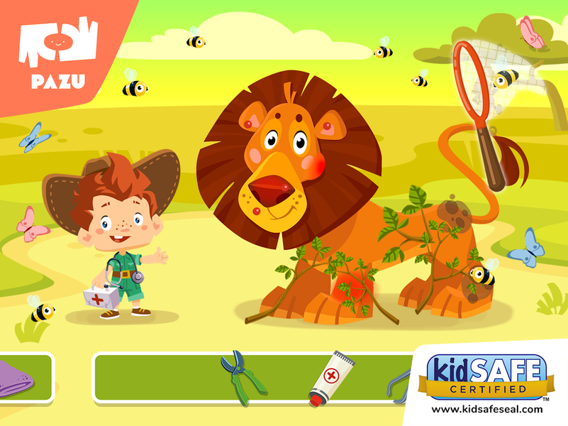 The Jungle animals need some assistance, some got sick, others got injured or hurt. Help the doctor get them better: treat the giraffe, fix the gorilla, cure the elephant, heal the lion, help the zebra and take care of the bear. Whether the animals have fever or ear infection, has scratches or wounds, or whether it just got caught up in branches or got dirty, you have the tools to fix them and help them out.