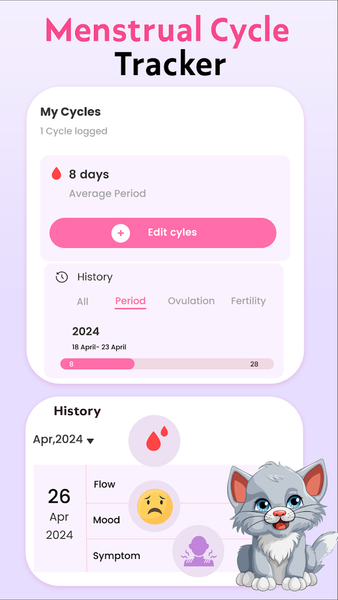 Embark on a journey of self-discovery with Period Tracker:Period Calendar, your trusted assistant in menstrual health. Whether you're having Periods, detecting pregnancy symptoms, or simply curious about your cycle, menstral cycle tracker is here to support you every step of the way. Download period and ovulation tracker now and embrace the power of reproductive health management. Track menstrual cycles & symptoms, cramps, and mood swings.
