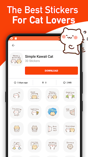 2) In WhatsApp, press the emoji icon, then the sticker icon at the bottom. Select Cute Kitty Stickers and start sharing with your friends.