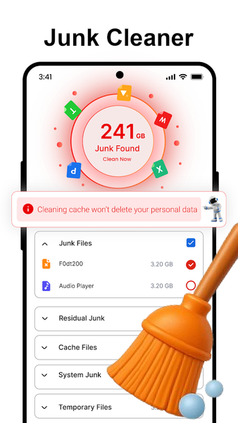 • AI phone cleaner clear all junk and irrelevant data.