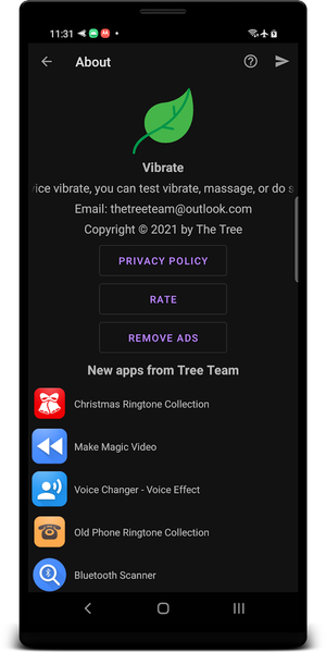 Turn your phone to vibrate device, you can use it to test vibrate of phone, massage or do something you like, I have test on SamSung Galaxy, HTC, Sony, Xiaomi phone it worked well. Have fun with this tool :)