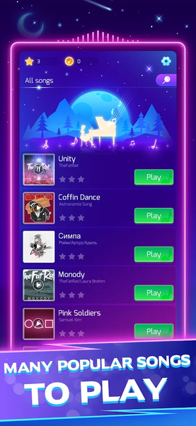 Follow the rhythm! PIANO STAR is an amazing music game with lots of popular POP songs and Classical Piano songs.