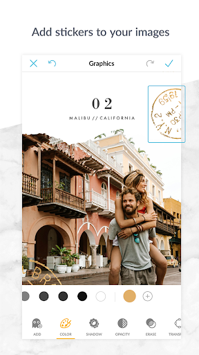 • Add graphic stickers and your own overlays—hello logos!—and keep transparency