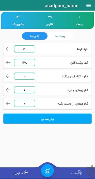 مشاهده طرفدار ها و تغییر در فالوئر ها
