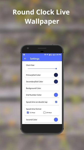 * Color of Clock & Widget (Text, Circle, Number, Digital clock, Date and Background)