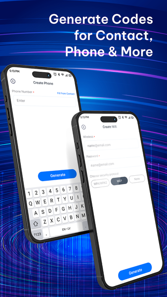 • Generate custom QR codes for text, URLs, Wi-Fi, phone numbers & more