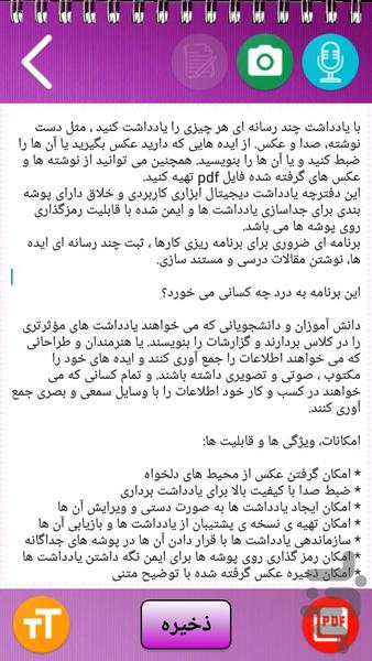 * قابلبت ایجاد فایل pdf از یادداشتهای متنی و تصویری