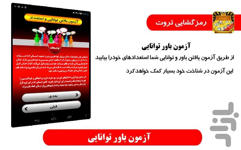 این برنامه ابتدا از شما آزمون هایی میگیرد + بعداز پایان این آزمون ها شما یک درک کلی از باورهای خود در اختیار خواهید داشت + سپس برنامه پاسخ های صحیح را به شما اعلام خواهد کرد و شما متوجه میشوید که چطور این همه سال بصورت ناآگاهانه مسیر فقر را انتخاب کرده اید + بعداز اینکه با خود واقعیتان روبرو شدید شما با استفاده از روشها و تکنیک های برنامه قادر خواهید بود مسیر ثروت را پیدا کرده و با انجام تمرین های برنامه این مسیر زیبا را براحتی تا انتها طی می نمائید..