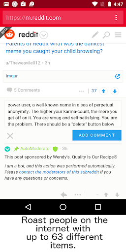 Have you ever needed to furiously send memes or copypastas? Looking for the perfect funny yet wrathful response to a comment? Then this keyboard is for you. Become lord of the internet with this app that lets you have access to an arsenal of copypastas anywhere you go at your fingertips. Happy posting!