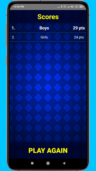 * Once the game is completed, the final result will be displayed. The winning team will be the one that has hit guessed most movies and TV shows.
