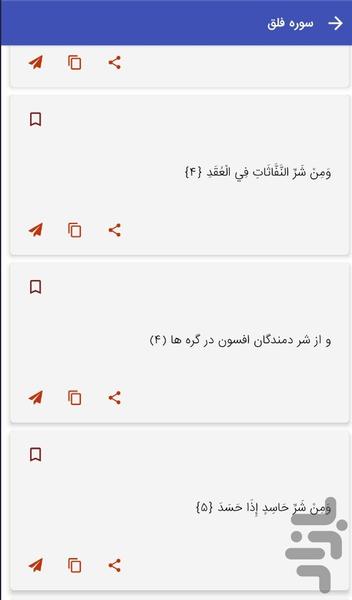 سوره فلق قرآن کریم همراه با ترجمه فارسی خدمت شما کاربران عزیز این اپلیکیشن کاملا رایگان و بدون هیچ تبلیغاتی میباشد لطفا ما رو هم از دعای خیرتون بی نصیب نذارین التماس دعا
