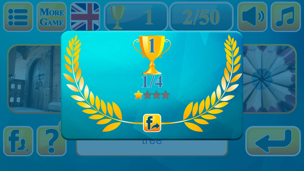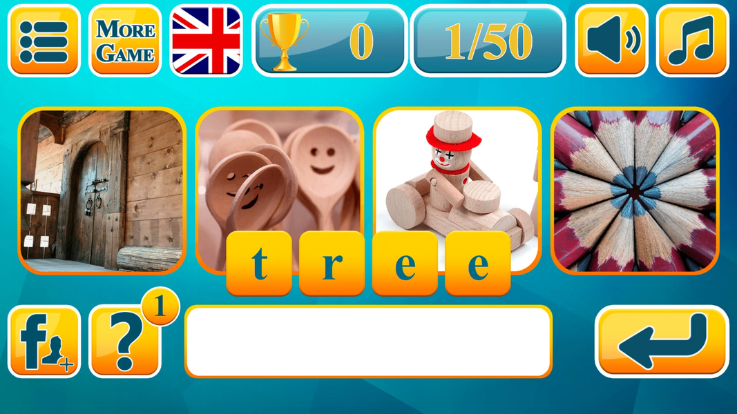 Rules are very simple: according to represemted 4 pictures it is necessary to guess a keyword. You can try to make it of two open images and to receive the maximum number of points. If it is impossible, then it is possible to open the remained 2 pictures, having pressed the hint that will allow to get more chances to guess the word. But by each pressing the hint you lose 1 point. Game consists of 50 interesting levels. The maximum number of points which can be earned for all game is 200 points!