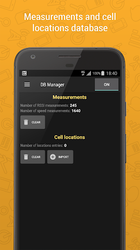 Charts show the changes of strength level and speed of mobile connection helping to monitor signal level (RSSI) and real amount of data in the channel. Log and Statistics display information about Base Transceiver Stations (BTS) recently used by a smartphone. After importing of a CLF file containing cell locations data can be displayed.