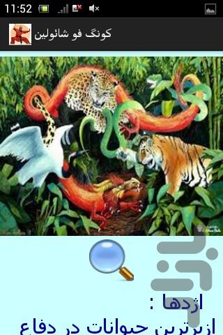 اين برنامه براي اموزش و اشنايي با كونگفوي چيني شائولين مانند سبك پنجه ببر و همچنين جيت كاندوي بروسلي و اشنايي با انواع