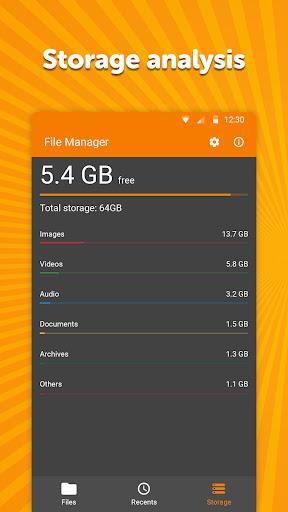 This file organizer is absolutely secure, containing multiple powerful security-related functions, like password protecting hidden items, deleting, or the whole app. You can choose between using a pattern, pin, or a fingerprint to keep your data private. The fingerprint permission is needed for locking either hidden item visibility, deleting files, or the whole app. Simple File Manager works without internet access, further guaranteeing your ultimate privacy.