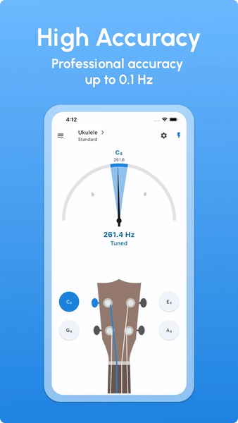 Tune the ukulele faster with the automatic mode. You can play any note, and we will properly detect it to give you hints on how to tune a ukulele.